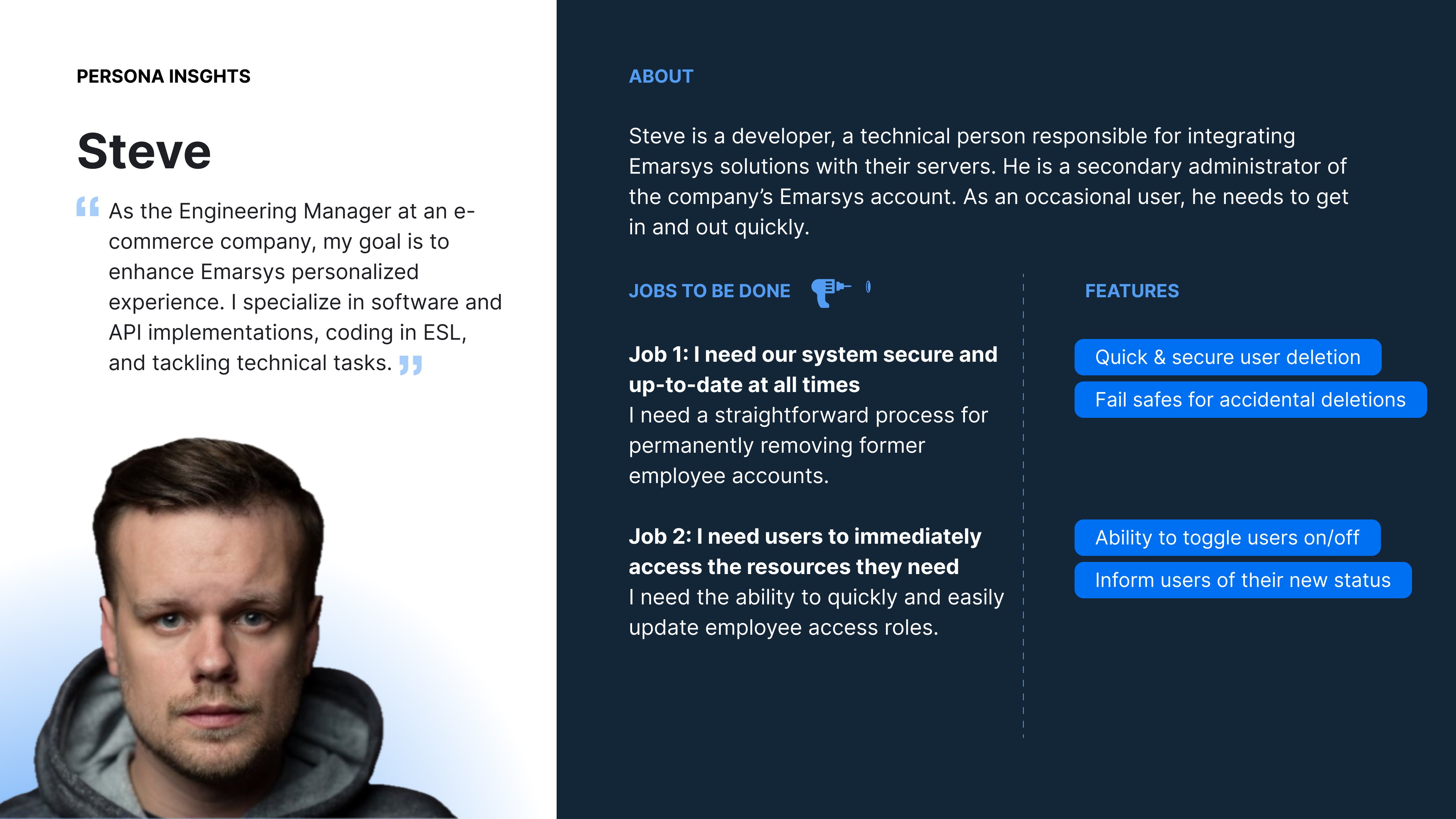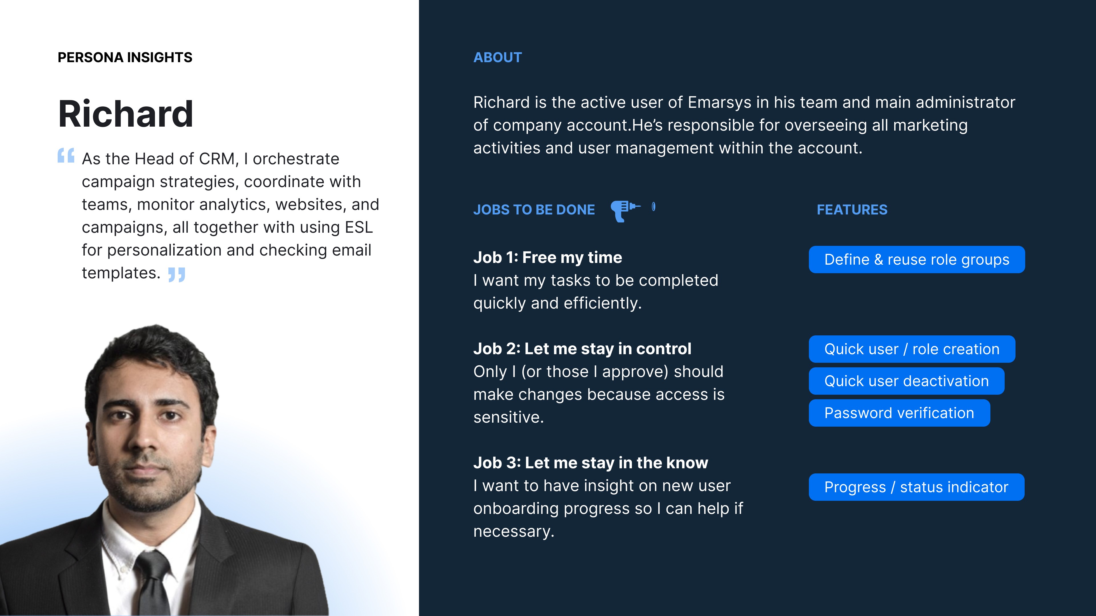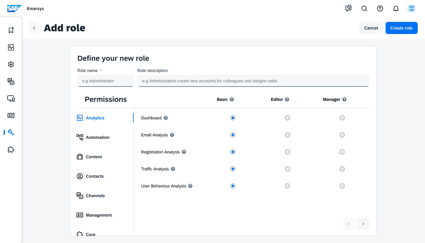 Emarsys is a digital marketing platform from SAP that provides a desktop web application for marketers to personalize their marketing efforts and engage better with customers. The platform needs an interface enabling administrators to manage user accounts independently, without involving Emarsys support.