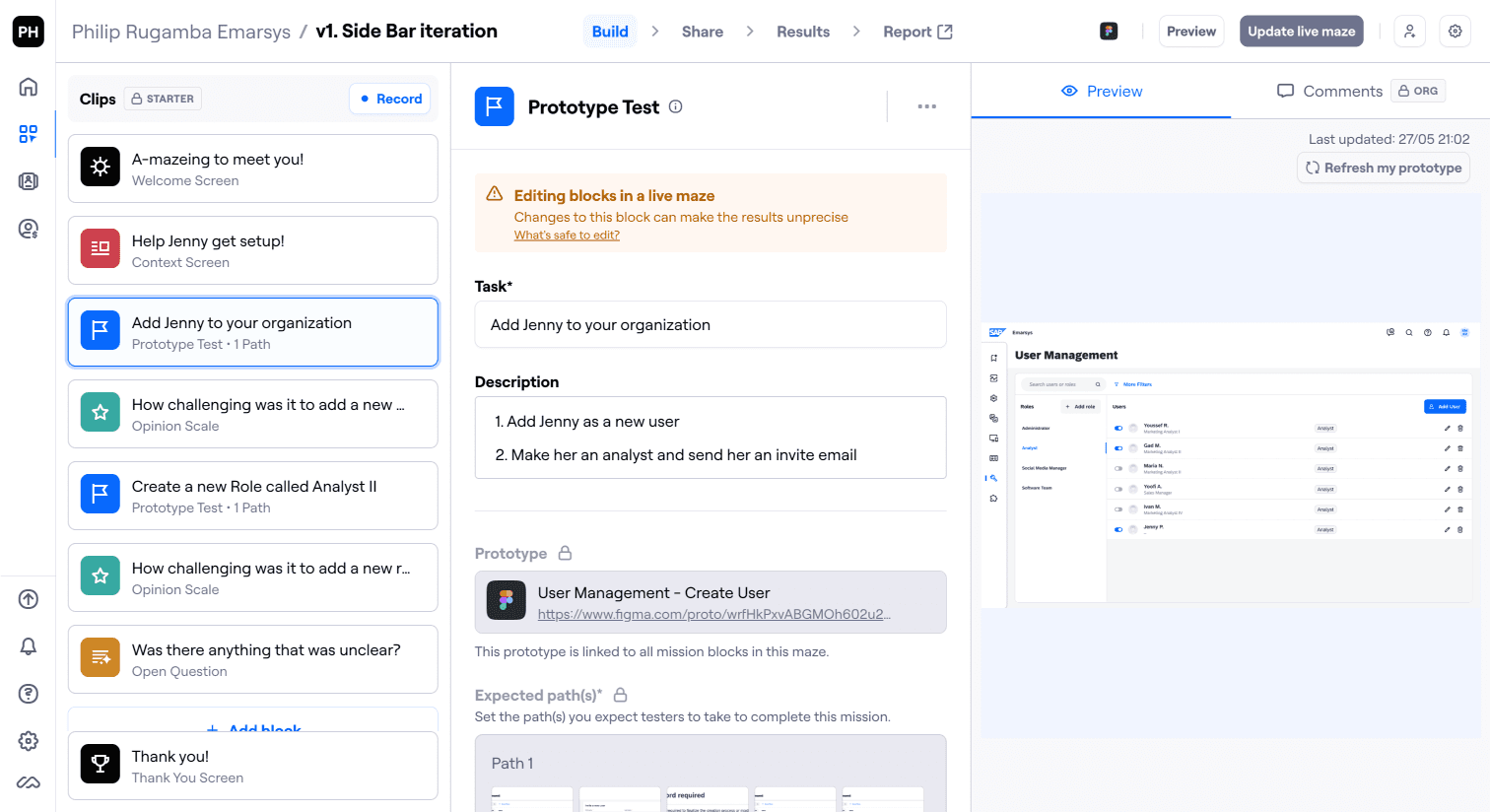 The Maze app (above) was utilized to create an unmoderated user test.